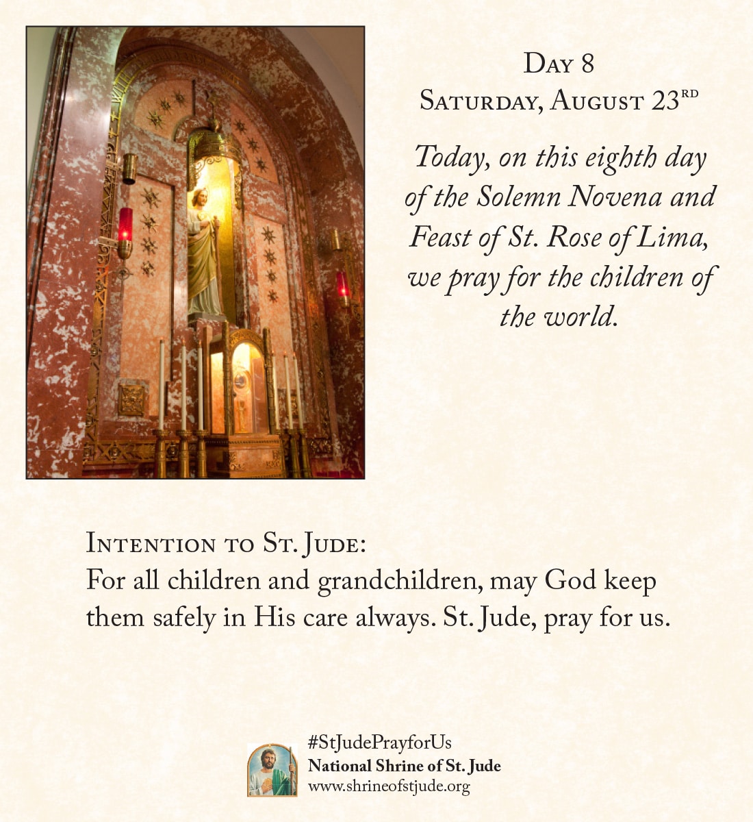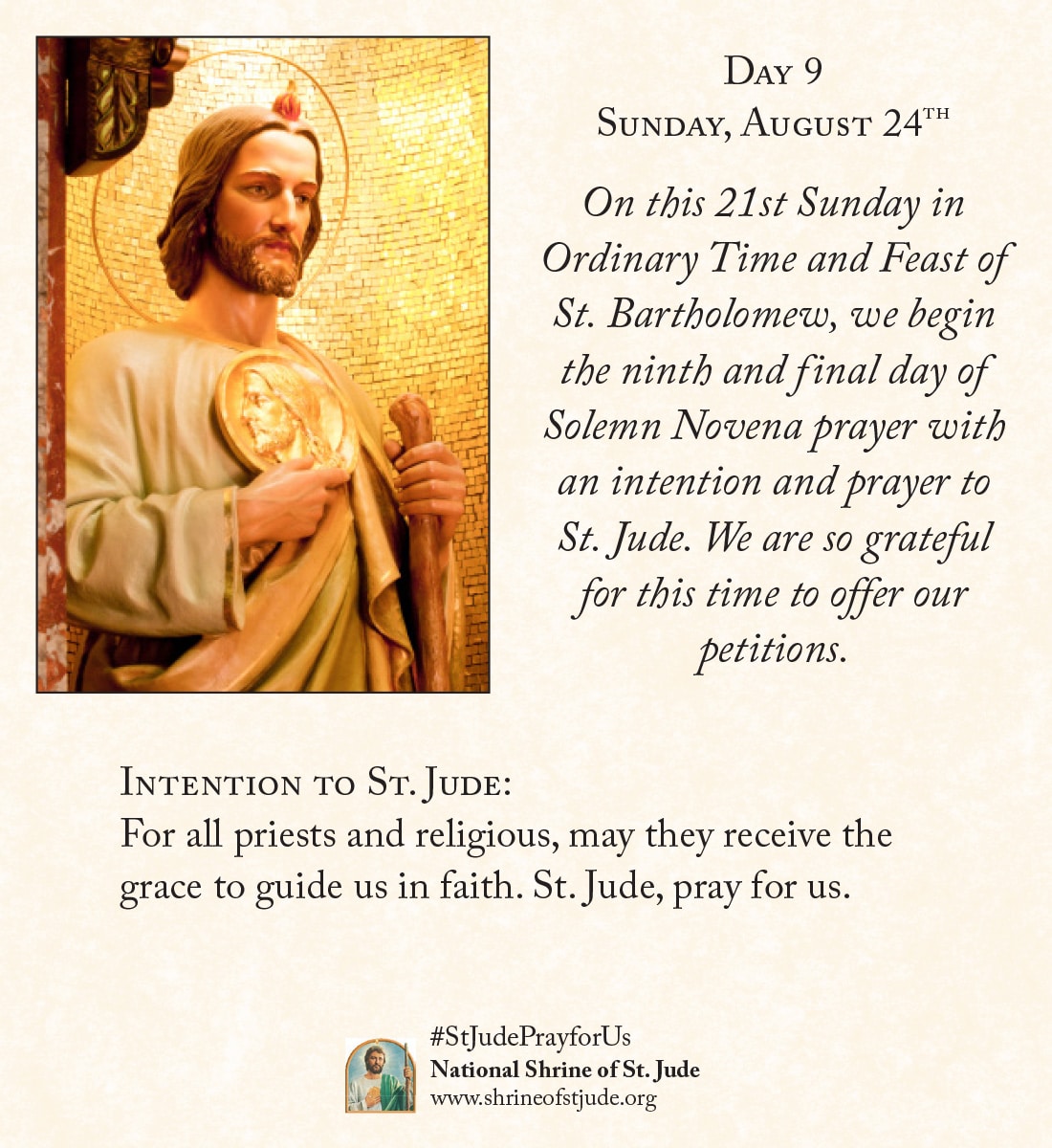 You can also view the daily Novena meditation prayer cards below and send your special intentions to the altar of St. Jude where they will be remembered in the prayers of the Claretians throughout all the days of the Novena.